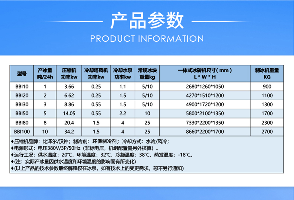 廣州冰泉是大型氟制冷冰磚機(jī)行業(yè)開(kāi)拓者,研發(fā)制造的全球第一臺(tái)日產(chǎn)冰量100噸的大型氟制冷冰磚機(jī)2010年在馬來(lái)西亞成功運(yùn)行。現(xiàn)單臺(tái)(套)設(shè)備日產(chǎn)冰量從1~200噸,可以滿足不同客戶(hù)需求。