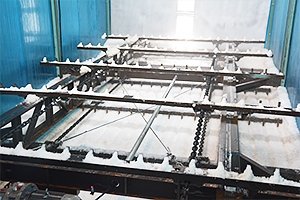 耙冰系統(tǒng)一般是與制冰設(shè)備配套使用,安裝在儲(chǔ)冰冷庫(kù)內(nèi)的,它有效的利用空間進(jìn)行來(lái)儲(chǔ)冰。當(dāng)在短時(shí)間內(nèi)需要大量用冰的情況下,儲(chǔ)冰冷庫(kù)可以自動(dòng)地輸送冰,以滿足用冰需求,儲(chǔ)冰運(yùn)轉(zhuǎn)過(guò)程中,耙冰機(jī)構(gòu)將制冰機(jī)生產(chǎn)的冰在冰庫(kù)水平范圍內(nèi)耙平,達(dá)到冰庫(kù)存儲(chǔ)的上極限后,控制系統(tǒng)自動(dòng)停止制冰機(jī)的運(yùn)行。當(dāng)冰庫(kù)內(nèi)的冰位較低時(shí),又將自動(dòng)啟動(dòng)制冰機(jī)。