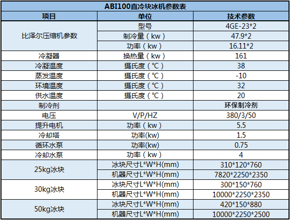 ABI100直冷塊冰機參數(shù)表