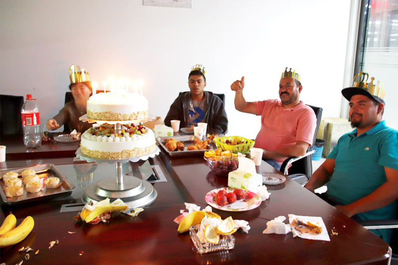 21日下午6點左右,會議室早已放置好各種美味的食物,隨后壽星們陸續(xù)進場。下午610分,生日會正式開始,活動由人事曹小姐主持,她的幽默詼諧,讓會場掌聲不斷。接著是大家的自我介紹環(huán)節(jié),大家依次介紹了自己的性格、愛好和生日感言。