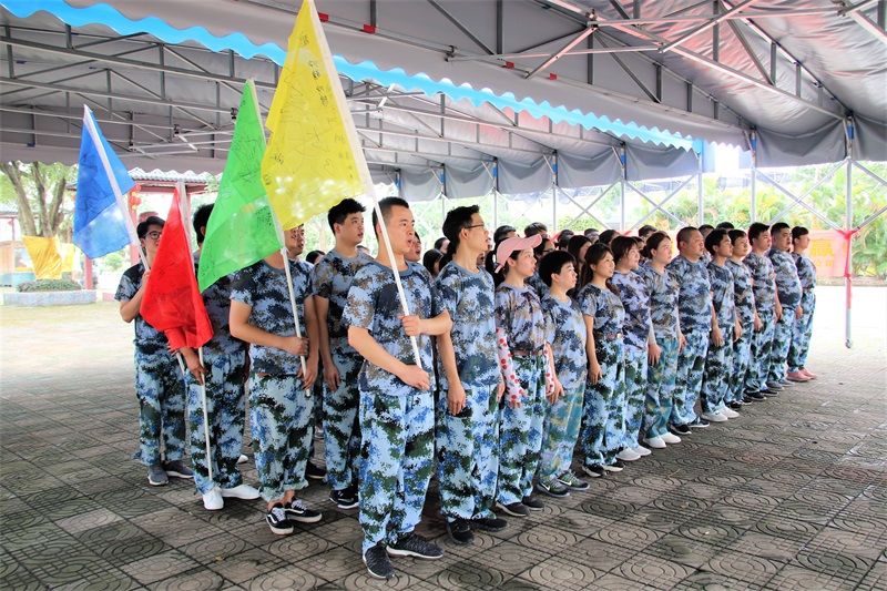 開(kāi)始進(jìn)行的是軍姿隊(duì)列訓(xùn)練,嚴(yán)格紀(jì)律,統(tǒng)一行動(dòng)。之后全體隊(duì)員分成了四個(gè)戰(zhàn)隊(duì),分別是沖鋒戰(zhàn)隊(duì)、猛虎戰(zhàn)隊(duì)、飛龍戰(zhàn)隊(duì)、海豚戰(zhàn)隊(duì),完成授旗儀式,確定了各戰(zhàn)隊(duì)口號(hào)與戰(zhàn)歌。