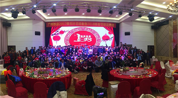 2018年2月6日下午兩點(diǎn),廣州冰泉2017年年終總結(jié)會暨2018年春節(jié)聯(lián)歡晚會在位于廣州番禺區(qū)興南大道的南方毅源大酒店花園廳順利舉行。