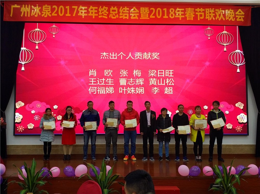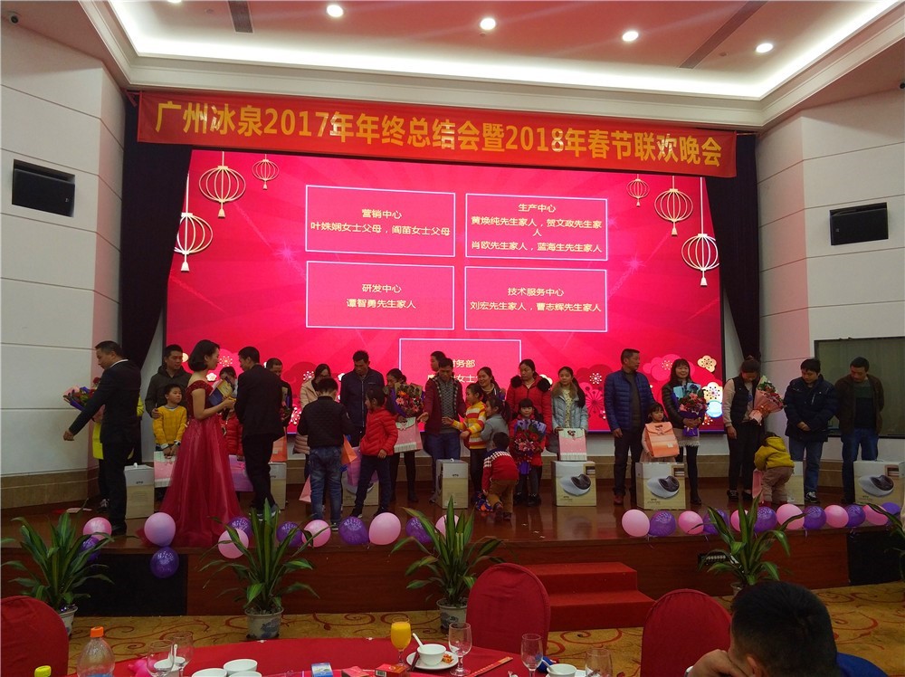 2018年2月6日下午兩點(diǎn),廣州冰泉2017年年終總結(jié)會暨2018年春節(jié)聯(lián)歡晚會在位于廣州番禺區(qū)興南大道的南方毅源大酒店花園廳順利舉行。