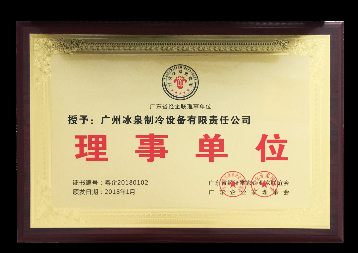 最近,廣東省經(jīng)濟學(xué)家企業(yè)家聯(lián)誼會和廣東企業(yè)家理事會眾代表投票決定,選舉廣州冰泉制冷設(shè)備有限責(zé)任公司為理事單位。