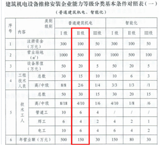 根據《建筑機電設備維修安裝企業(yè)能力等級分類辦法(修訂)》,建筑機電設備維修安裝能力等級范圍,涵蓋普通建筑機電、智能化、制冷空調等設備系統(tǒng)維修安裝項目,是指一般工業(yè),公用工程及公共建筑竣工后運行中的運行操作、維修保養(yǎng)和節(jié)能改造項目,包含各相應專業(yè)設備和系統(tǒng)的檢測診斷、維修、保養(yǎng)、運行托管等運維服務和節(jié)能改造安裝、能源管理等服務。