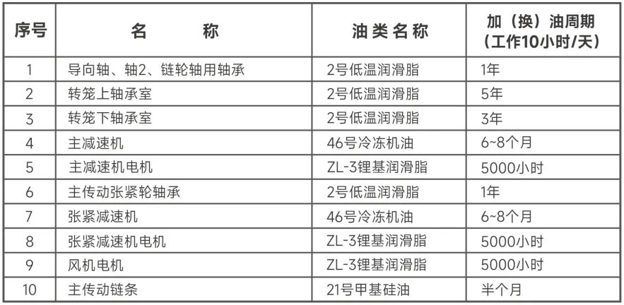 · 日常維護與保養(yǎng)的項目,特別是減速機和電動機的維護與保養(yǎng),請認真參照設(shè)備說明書執(zhí)行。