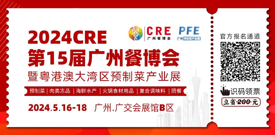 2024年5月16日-18日,華南最大餐飲產(chǎn)業(yè)鏈年度盛會(huì)——CRE·2024第15屆廣州酒店餐飲業(yè)博覽會(huì)暨大灣區(qū)預(yù)制菜產(chǎn)業(yè)展在廣州·廣交會(huì)展館B區(qū)舉行。